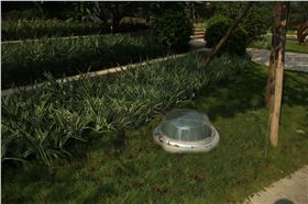 進(jìn)入金山谷創(chuàng)意園,在綠化帶、小路上可見一個(gè)個(gè)采光罩,小小的一個(gè)采光罩收集的自然光和太陽(yáng)光足以照亮地下80-120平方米的室內(nèi)空間,并不會(huì)破壞建筑整體的美觀。