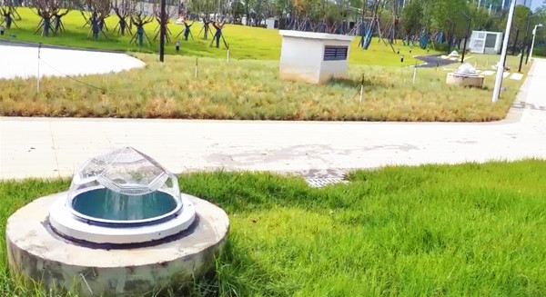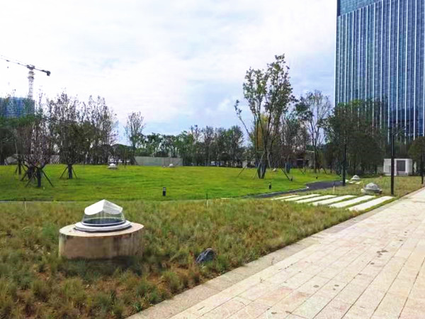 遠眺鉆石采光器就像一顆顆的磚石鑲在綠化帶里一樣,與綠化帶景色相互交映,組成了一道靚麗的風(fēng)景線!