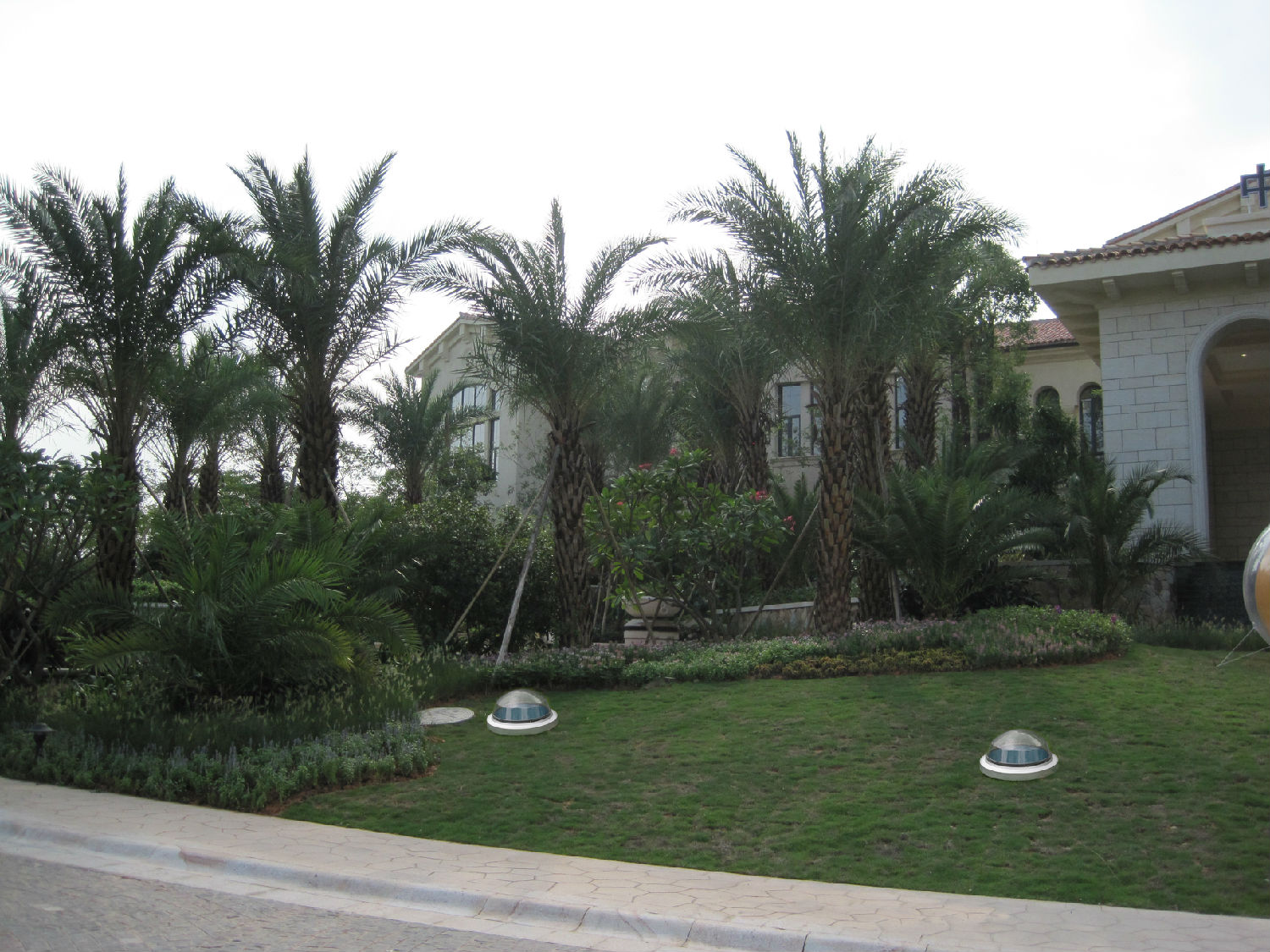 美林湖商業(yè)街的營銷中心前面的草地上,可以看見有幾個(gè)低調(diào)又不失優(yōu)雅的采光罩,高透光的類特警盾牌PC材料做成的采光罩旁邊有銀白色的鋁圈裝飾。