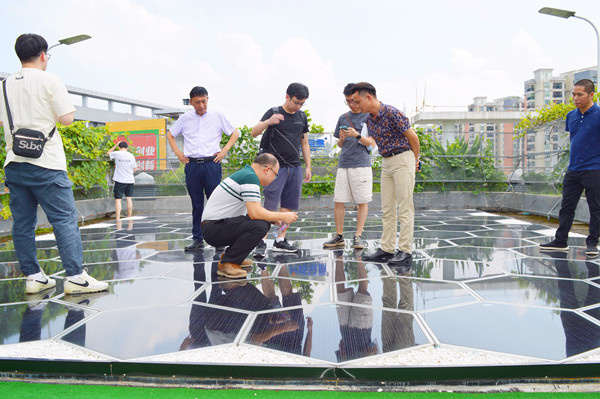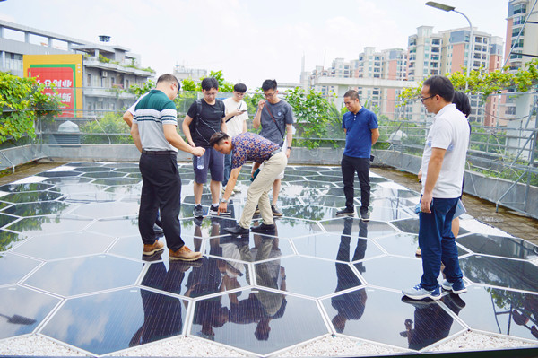接著,專家團(tuán)隊(duì)們對(duì)光能寶盒發(fā)電系統(tǒng)進(jìn)行了產(chǎn)品承載、景觀亮化效果、產(chǎn)品互動(dòng)等體驗(yàn)。光能寶盒發(fā)電系統(tǒng)適應(yīng)各種建筑的屋面、立面安裝條件,發(fā)電率比普通分布式光伏發(fā)電提高30%!可替代傳統(tǒng)的屋頂磚、地板磚、側(cè)墻磚,安裝面積使用率高;特別是創(chuàng)意產(chǎn)業(yè)園、智慧園區(qū)等項(xiàng)目應(yīng)用光能寶盒發(fā)電系統(tǒng)效果更佳,可以自由組合成各種樣式,實(shí)現(xiàn)更多創(chuàng)意展現(xiàn)!