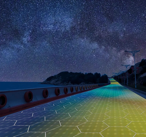 ▲光能寶盒發(fā)電地磚夜間景觀亮化