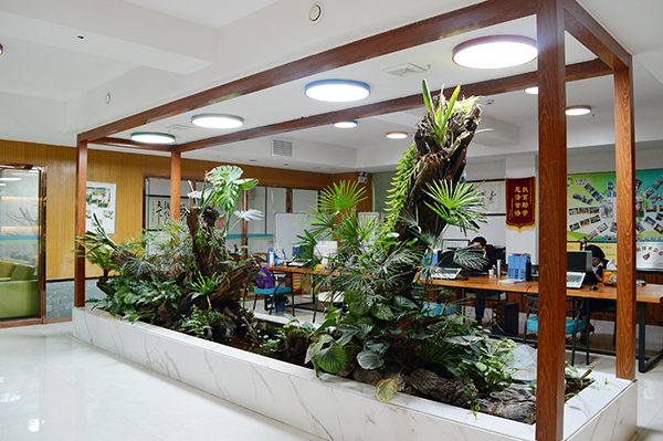 綠化區(qū)的植物在無電照明系統(tǒng)引入的陽光中進(jìn)行光合作用